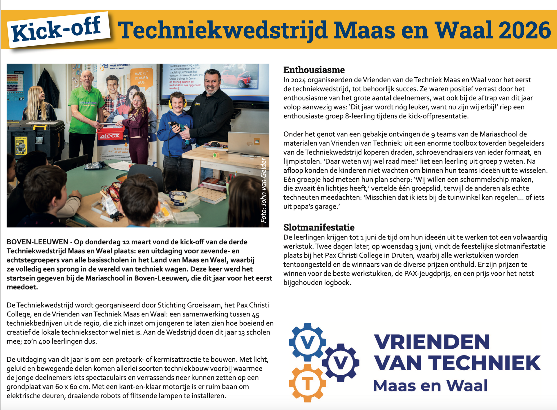 Kick-off Techniekwedstrijd Maas en Waal 2026.